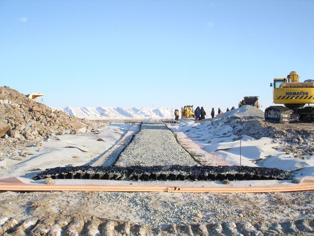 В дорожном строительстве также применяются геотекстильные ткани, которые разделяют слои грунта с разными физико-механическими свойствами, перераспределяют напряжение в основании, повышают несущую способность и устойчивость откосов. Ускорение отвода воды с дорожного полотна улучшает работу дренажных слоев, укрепляет влажный грунт и предотвращает капиллярное поднятие воды.
