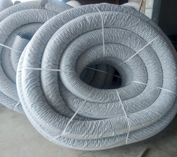 - Долговечность за счет интегрированного фильтра: Современные трубы с фабрично прикрепленным геотекстилем (типа «кокос») защищены от заиливания песком и частицами грунта. Это гарантирует стабильную пропускную способность системы на протяжении 50 и более лет.