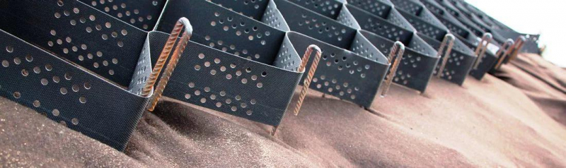 - На полигонах ТБО и гидротехнических объектах (фиксация верхней и нижней части откосов).